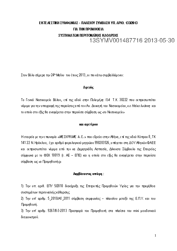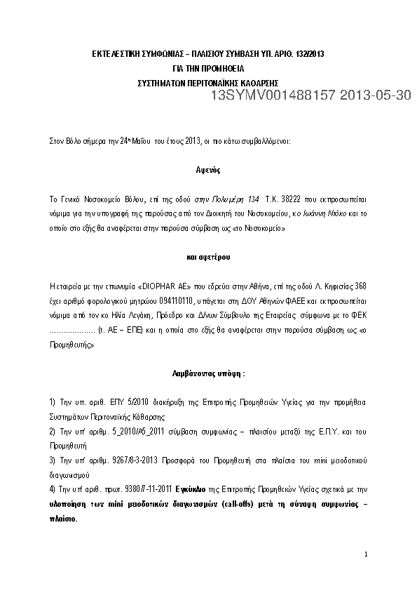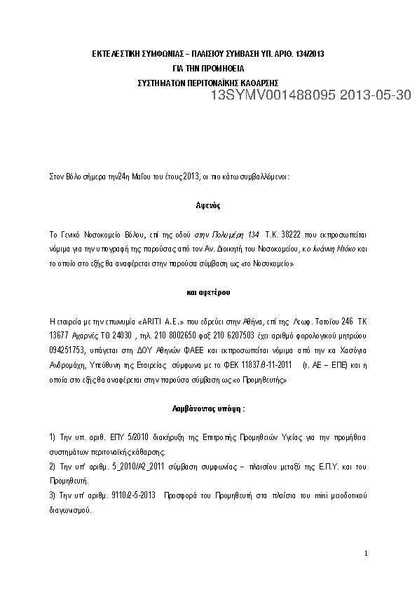 8. ΕΚΤΕΛΕΣΤΙΚΗ ΣΥΜΦΩΝΙΑΣ ΠΛΑΙΣΙΟΥ ΣΥΜΒΑΣΗ ΓΙΑ ΤΗΝ ΠΡΟΜΗΘΕΙΑ ΣΥΣΤ. ΠΕΡΙΤ. ΚΑΘΑΡΣΗΣ