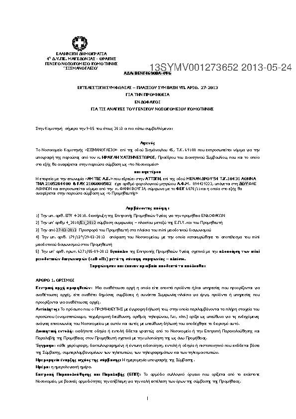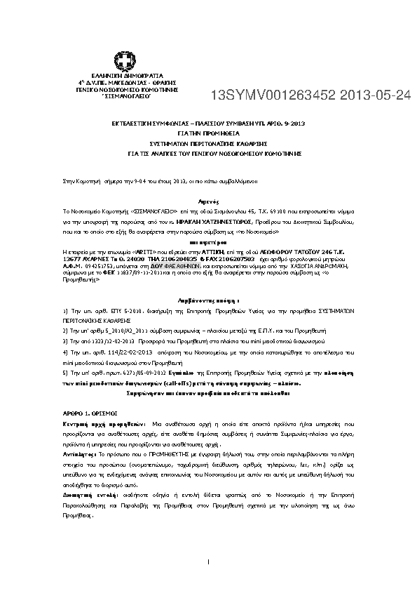7. ΕΚΤΕΛΕΣΤΙΚΗ ΣΥΜΦΩΝΙΑΣ – ΠΛΑΙΣΙΟΥ ΣΥΜΒΑΣΗ ΥΠ. ΑΡΙΘ. 9
