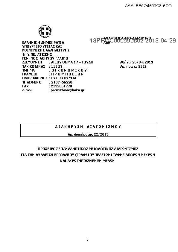 Αναζήτηση σε προκηρύξεις και συμβάσεις για: