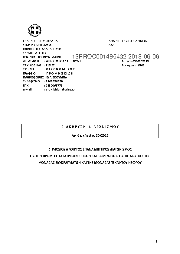 4. ΔΗΜΟΣΙΟΣ ΑΝΟΙΚΤΟΣ ΕΠΑΝΑΛΗΠΤΙΚΟΣ ΔΙΑΓΩΝΙΣΜΟΣ ΓΙΑ ΤΗΝ ΠΡΟΜΗΘΕΙΑ ΙΑΤΡΙΚΩΝ ΚΛΙΝΩΝ ΚΑΙ ΚΟΜΟΔΙΝΩΝ ΓΙΑ ΤΙΣ ΑΝΑΓΚΕΣ ΤΗΣ ΜΟΝΑΔΑΣ ΕΜΦΡΑΓΜΑΤΩΝ ΚΑΙ ΤΗΣ ΜΟΝΑΔΑΣ ΤΕΧΝΗΤΟΥ ΝΕΦΡΟΥ
