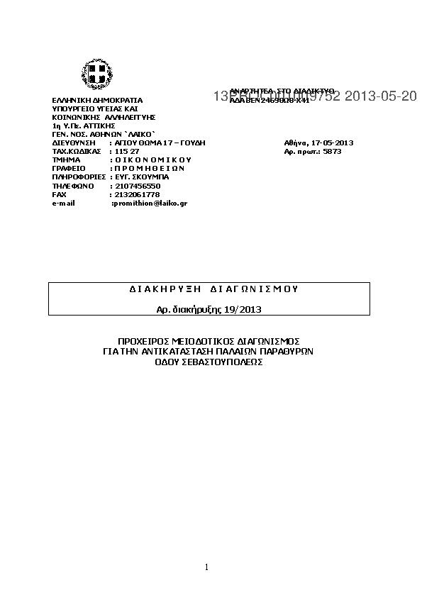 6. 19/2013 ΔΙΑΚΗΡΥΞΗ ΠΡΟΧΕΙΡΟΣ ΜΕΙΟΔΟΤΙΚΟΣ ΔΙΑΓΩΝΙΣΜΟΣ ΓΙΑ ΤΗΝ ΑΝΤΙΚΑΤΑΣΤΑΣΗ ΠΑΛΑΙΩΝ ΠΑΡΑΘΥΡΩΝ