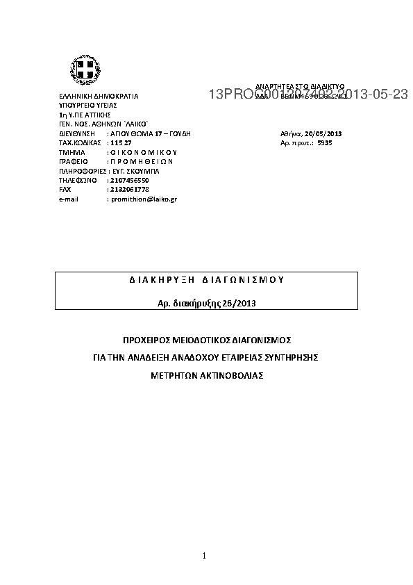 8. 26/2013 ΔΙΑΚΗΡΥΞΗ ΓΙΑ ΑΝΑΔΕΙΞΗ ΕΤΑΙΡΕΙΑΣ ΣΥΝΤΗΡΗΣΗΣ ΜΕΤΡΗΤΩΝ ΑΚΤΙΝΟΒΟΛΙΑΣ