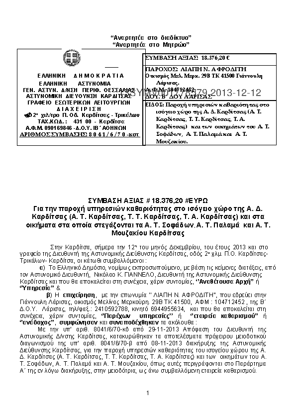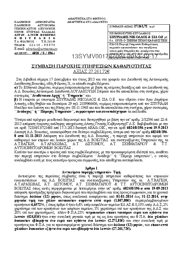 1. Σύμβαση καθαριότητας Α.Δ.Αρκαδίας.