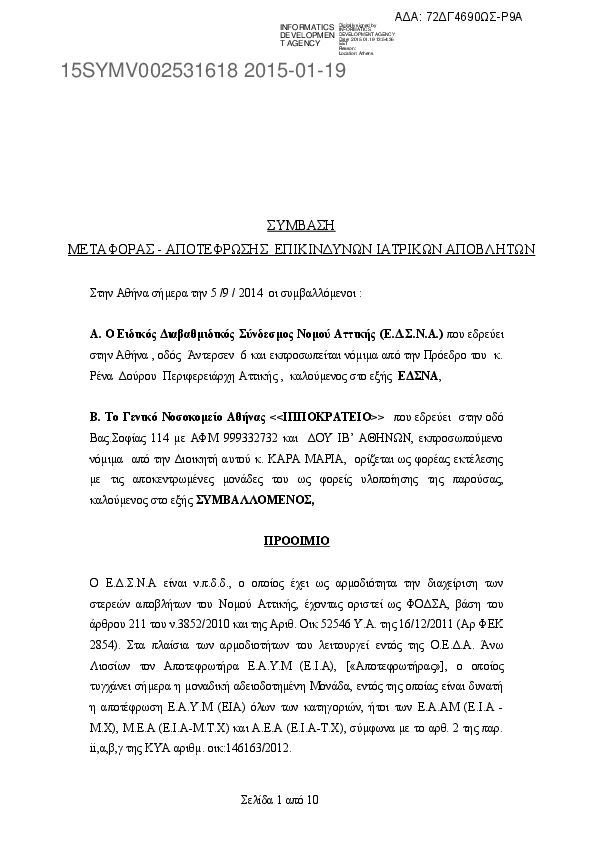 10. ΣΥΜΒΑΣΗ ΜΕΤΑΦΟΡΑΣ-ΑΠΟΤΕΦΡΩΣΗΣ ΕΠΙΚΙΝΔΥΝΩΝ ΙΑΤΡΙΚΩΝ ΑΠΟΒΛΗΤΩΝ