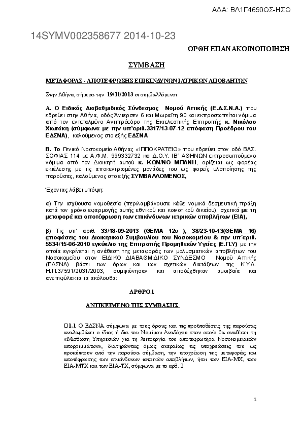 9. ΣΥΜΒΑΣΗ ΜΕΤΑΦΟΡΑΣ-ΑΠΟΤΕΦΡΩΣΗΣ ΕΠΙΚΙΝΔΥΝΩΝ ΙΑΤΡΙΚΩΝ ΑΠΟΒΛΗΤΩΝ