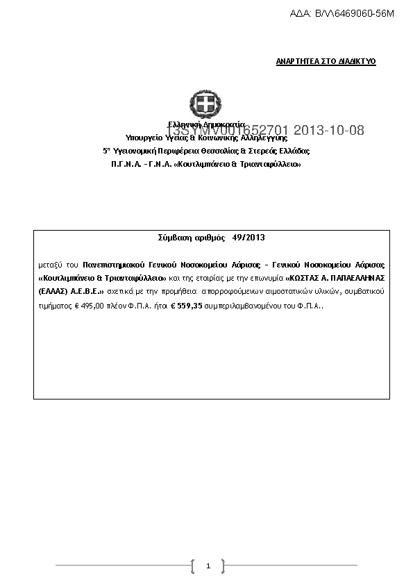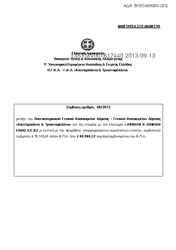 6. ΣΥΜΒΑΣΗ ΜΕ JOHNSON & JOHNSON ΕΛΛΑΣ ΑΕΒΕ ΓΙΑ ΠΡΟΜΗΘΕΙΑ ΑΠΟΡΡΟΦΟΥΜΕΝΩΝ ΑΙΜΟΣΤΑΤΙΚΩΝ ΥΛΙΚΩΝ