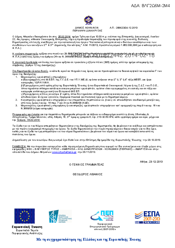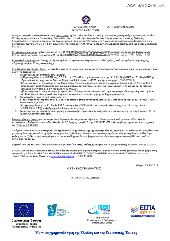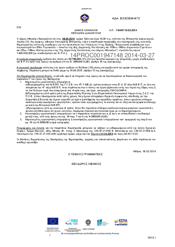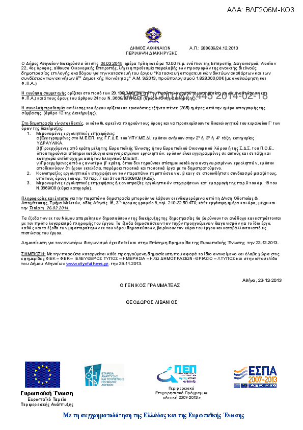 Αναζήτηση σε προκηρύξεις και συμβάσεις για: