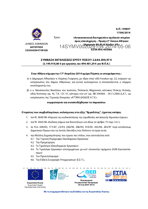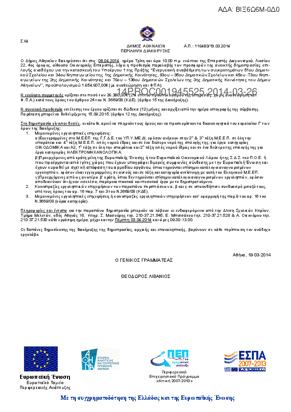 7. Υποέργο 1 “Ενεργειακή αναβάθμιση των συγκροτημάτων 50ου Γυμνασίου – Λυκείου της 4ης Δημοτικής Κοινότητας και 105ου -166ου Δημοτικών Σχολείων και 25ου -138ου Νηπιαγωγείων της 7ης Δημοτικής Κοινότητας του Δήμου Αθηναίων”, προϋπολογισμού 1....