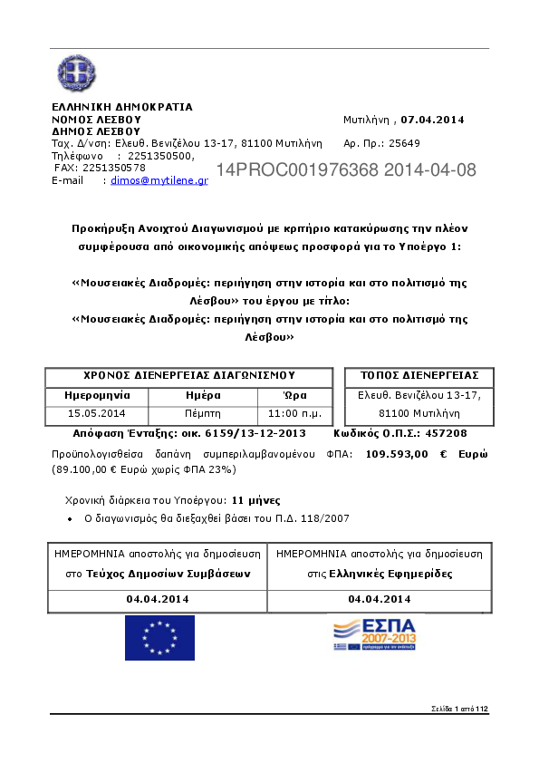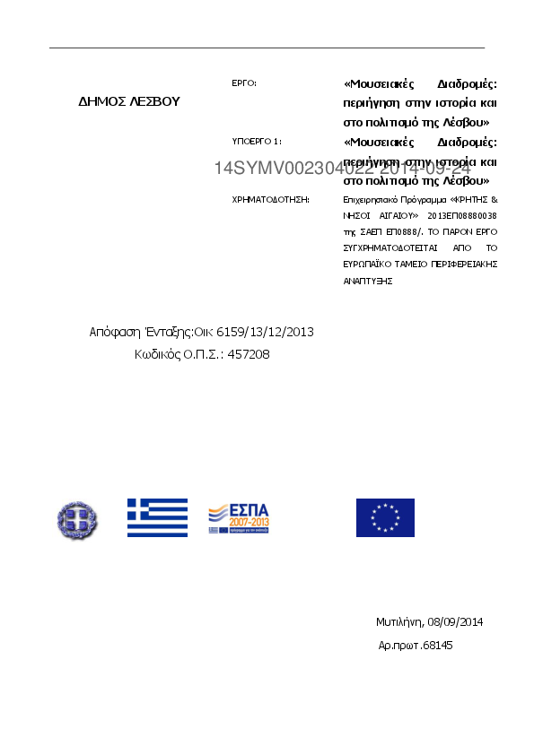 1. Περίληψη Διακήρυξης για το έργο "Μουσειακές Διαδρομές: Περιήγηση στην ιστορία και τον πολιτισμό της Λέσβου"
