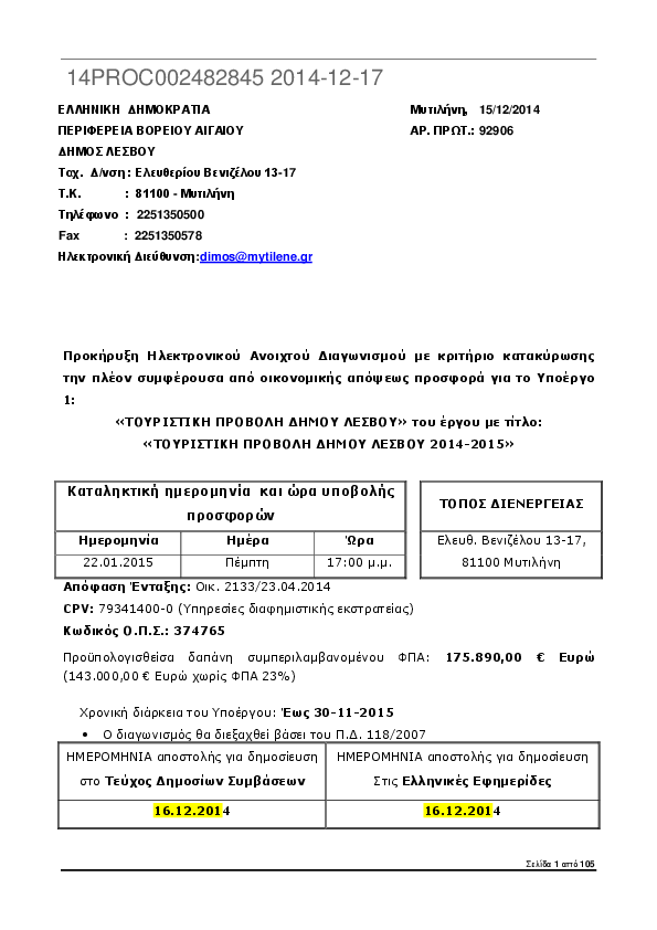 Αναζήτηση σε προκηρύξεις και συμβάσεις για: