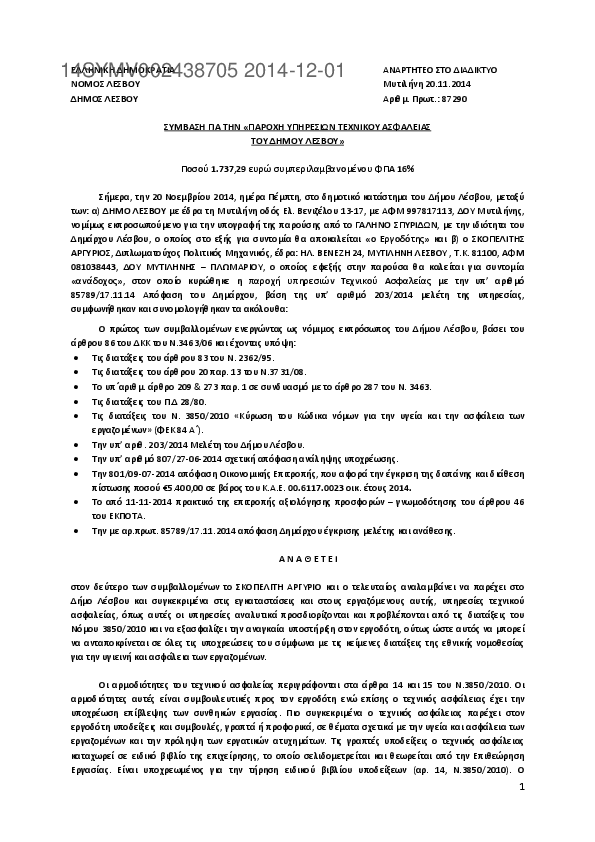 8. ΠΑΡΟΧΗ ΥΠΗΡΕΣΙΩΝ ΤΕΧΝΙΚΟΥ ΑΣΦΑΛΕΙΑΣ ΤΟΥ ΔΗΜΟΥ ΛΕΣΒΟΥ