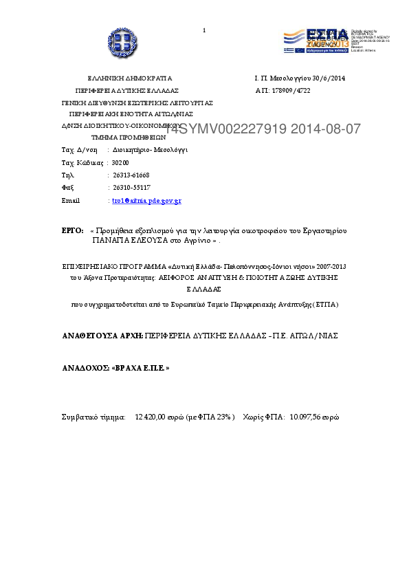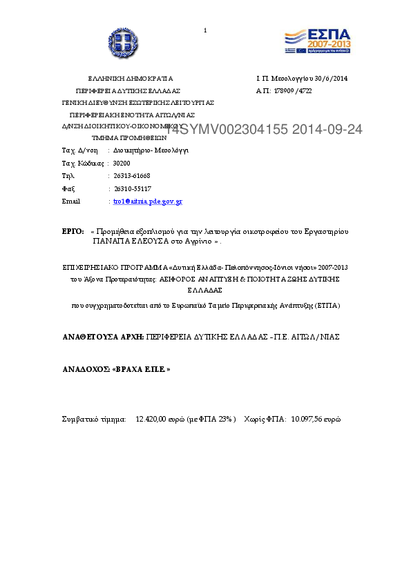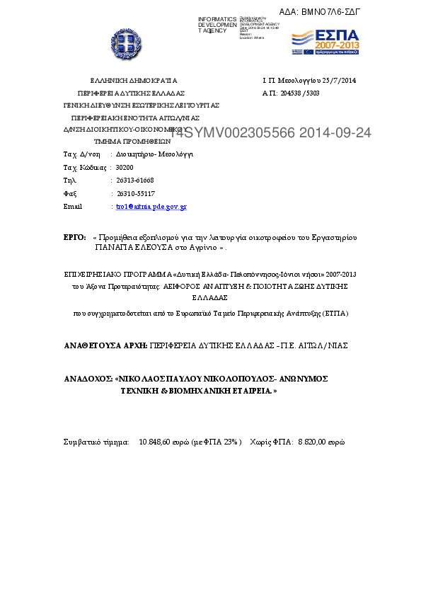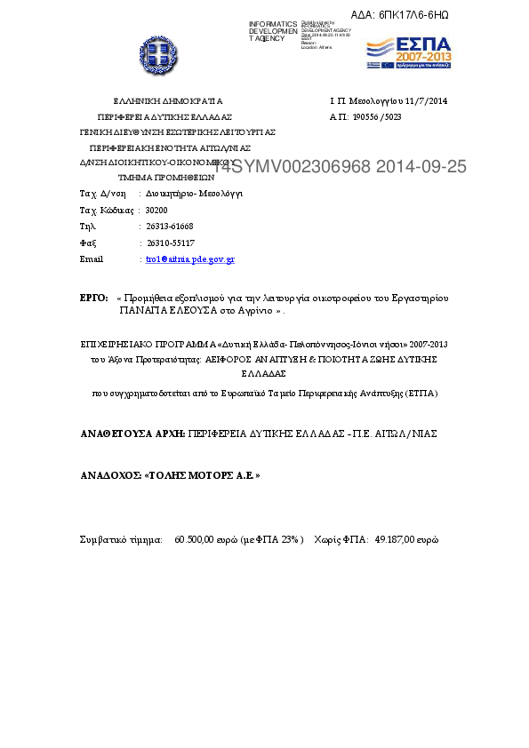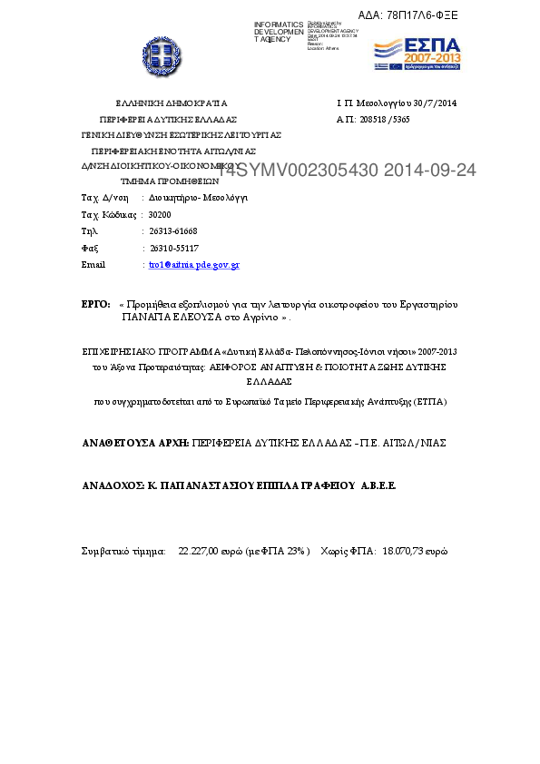 Αναζήτηση σε προκηρύξεις και συμβάσεις για: