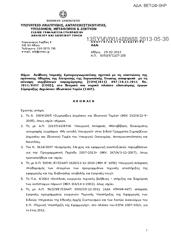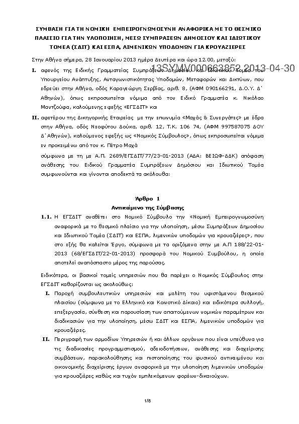9. ΣΥΜΒΑΣΗ ΓΙΑ ΤΗΝ ΠΑΡΟΧΗ ΥΠΗΡΕΣΙΩΝ ΣΥΜΒΟΥΛΟΥ ΠΡΟΣ ΤΗΝ ΕΙΔΙΚΗ ΓΡΑΜΜΑΤΕΙΑ ΣΥΜΠΡΑΞΕΩΝ ΔΗΜΟΣΙΟΥ ΚΑΙ ΙΔΙΩΤΙ