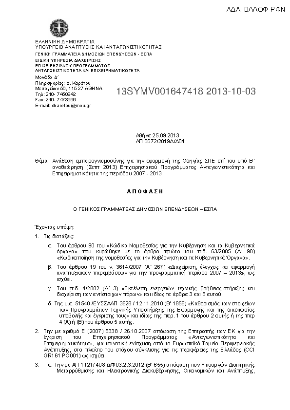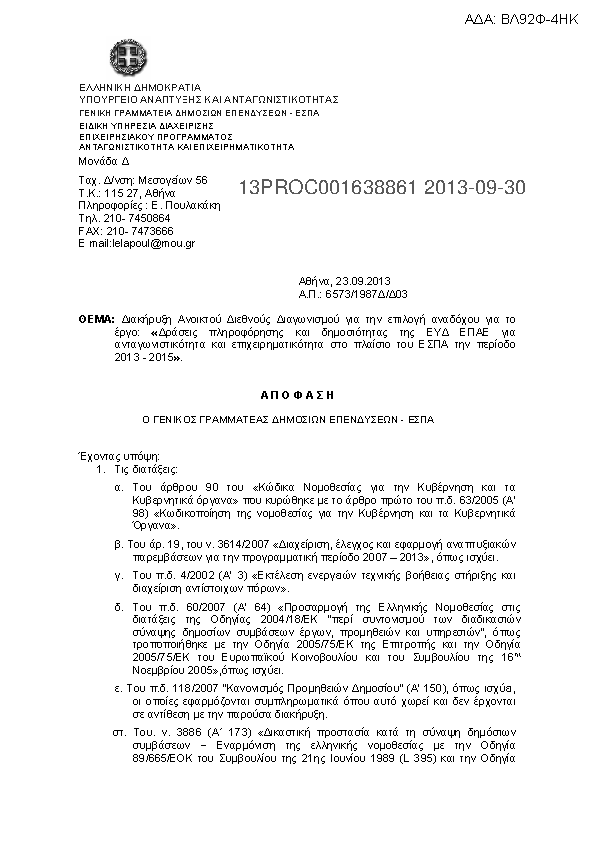 2. Διακήρυξη Ανοικτού Διεθνούς Διαγωνισμού για την επιλογή αναδόχου για το έργο: «Δράσεις πληροφόρησης και δημοσιότητας της ΕΥΔ ΕΠΑΕ για ανταγωνιστικότητα και επιχειρηματικότητα στο πλαίσιο του ΕΣΠΑ την περίοδο 2013