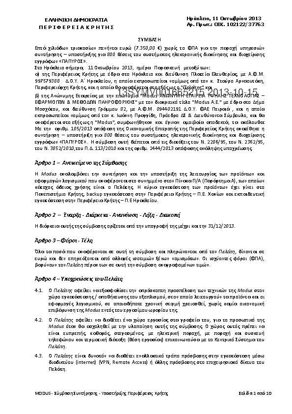 10. ΣΥΜΒΑΣΗ ΓΙΑ ΤΗΝ ΣΥΤΝΗΡΗΣΗ ΥΠΟΣΤΗΡΙΞΗ ΤΟΥ ΣΥΣΤΗΜΑΤΟΣ ΗΛΕΚΤΡΟΝΙΚΗΣ ΔΙΑΚΙΝΗΣΗΣ & ΔΙΑΧΕΙΡΙΣΗΣ ΕΓΓΡΑΦΩΝ