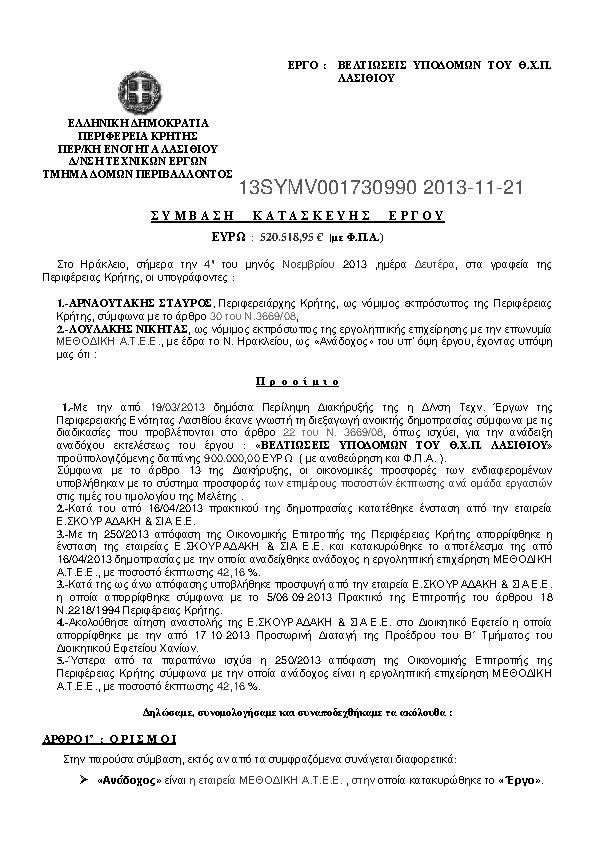 7. Σ Υ Μ Β Α Σ Η ΒΕΛΤΙΩΣΕΙΣ ΥΠΟΔΟΜΩΝ ΤΟΥ Θ.Χ.Π. ΛΑΣΙΘΙΟΥ