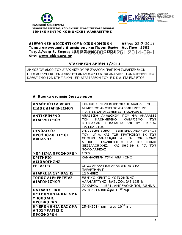 6. ΔΗΜΟΣΙΟΣ ΑΝΟΙΚΤ ΔΙΑΓΩΝΙΣΜΟΣ ΕΤΗΣΙΟ ΚΑΘΗΜ ΚΑΘΑΡ ΤΩΝ ΚΤΗΡΙΑΚΩΝ ΕΓΚΑΤΑΣΤ ΤΟΥ Ε.Κ.Κ.Α.