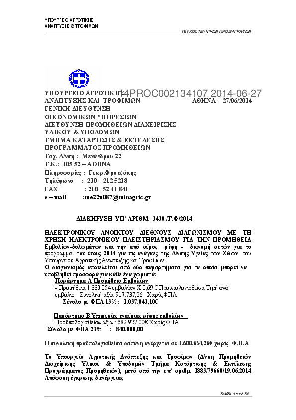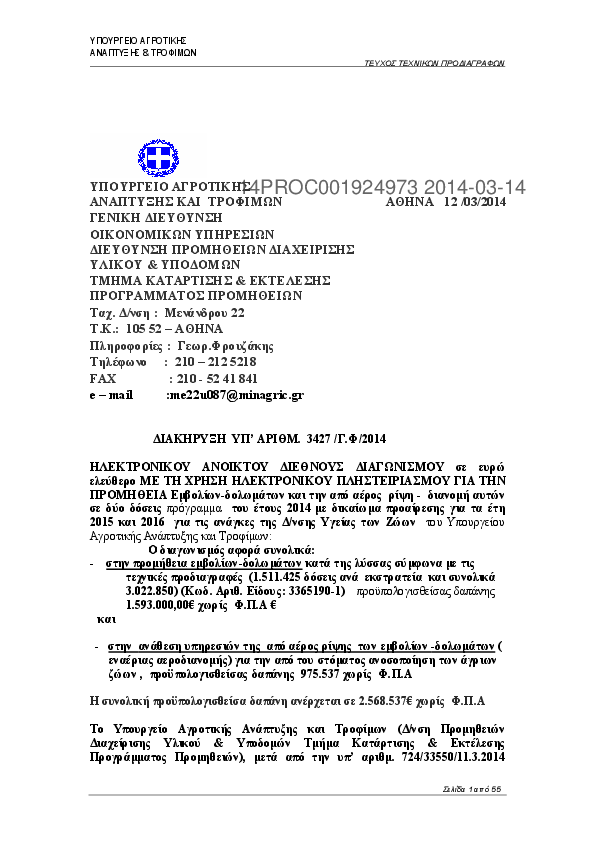 3. Διακήρυξη 3430/ΓΦ/2014 ανοικτού διαγωνισμού λύσσας (επανάληψη)