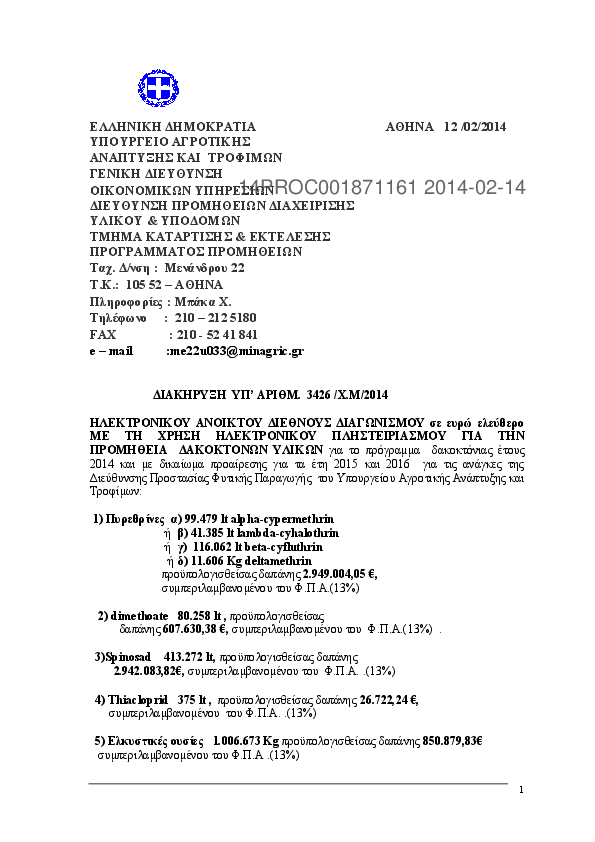 1. ΔΙΑΚΗΡΥΞΗ ΑΡΙΘΜ.3426/ΧΜ/2014