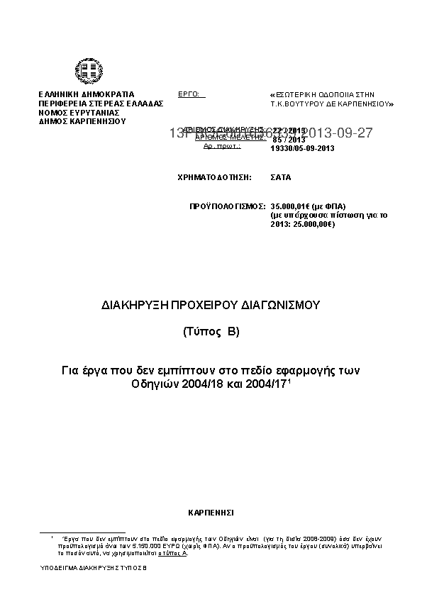 2. ΒΕΛΤΙΩΣΗ ΟΔΟΣΤΡΩΜΑΤΩΝ ΤΜΗΜΑΤΩΝ ΕΘΝΙΚΩΝ ΟΔΩΝ ΤΟΥ ΔΗΜΟΥ ΚΑΡΠΕΝΗΣΙΟΥ Ν.ΕΥΡΥΤΑΝΙΑΣ