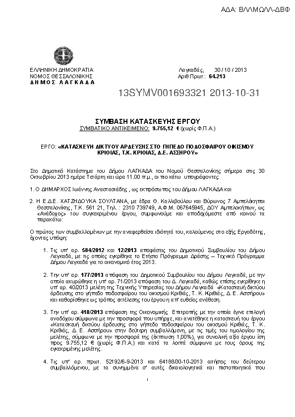 8. «ΚΑΤΑΣΚΕΥΗ ΔΙΚΤΥΟΥ ΑΡΔΕΥΣΗΣ ΣΤΟ ΓΗΠΕΔΟ ΠΟΔΟΣΦΑΙΡΟΥ ΟΙΚΙΣΜΟΥ ΚΡΙΘΙΑΣ, Τ.Κ. ΚΡΙΘΙΑΣ, Δ.Ε. ΑΣΣΗΡΟΥ»