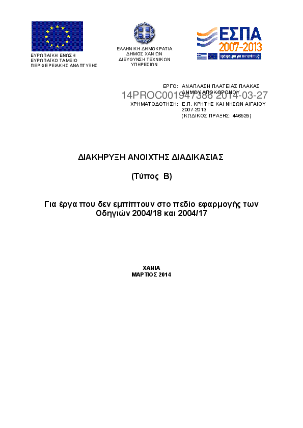 8. ΔΙΑΚΗΡΥΞΗ ΑΝΟΙΧΤΗΣ ΔΙΑΔΙΚΑΣΙΑΣ Ανάπλαση Οικισμού Κάμπου Δήμου Κισσάμου