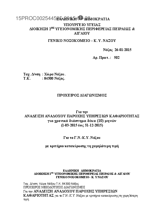1. ΠΡΟΧΕΙΡΟΣ ΜΕΙΟΔΟΤΙΚΟΣ ΔΙΑΓΩΝΙΣΜΟΣ ΓΙΑ ΤΗΝ ΚΑΘΑΡΙΟΤΗΤΑ ΤΩΝ ΧΩΡΩΝ ΤΟΥ Γ.Ν-Κ.Υ ΝΑΞΟΥ.