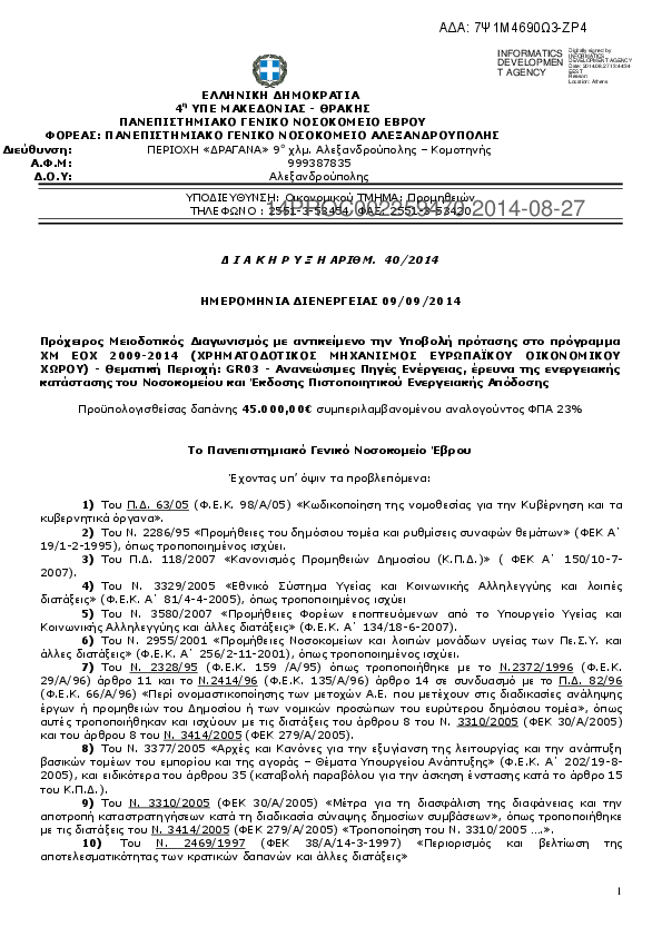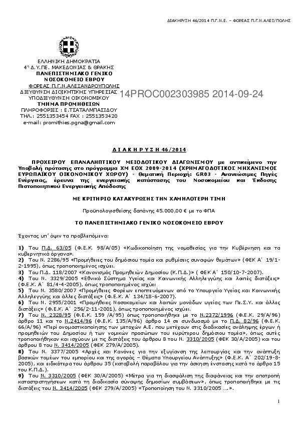 10. ΑΝΤΙΚΕΙΜΕΝΟ ΤΗΝ ΑΝΑΔΕΙΞΗ ΑΝΑΔΟΧΟΥ ΠΑΡΟΧΗΣ ΥΠΗΡΕΣΙΩΝ ΕΠΙΣΚΕΥΗΣ & ΣΥΝΤΗΡΗΣΗΣ ΤΩΝ ΗΛΕΚΤΡΟΜΗΧΑΝΟΛΟΓΙΚΩΝ ΕΓΚΑΤΑΣΤΑΣΕΩΝ ΤΟΥ ΠΑΝΕΠΙΣΤΗΜΙΑΚΟΥ ΓΕΝΙΚΟΥ ΝΟΣΟΚΟΜΕΙΟΥ ΑΛΕΞΑΝΔΡΟΥΠΟΛΗΣ