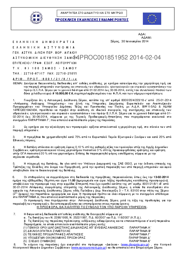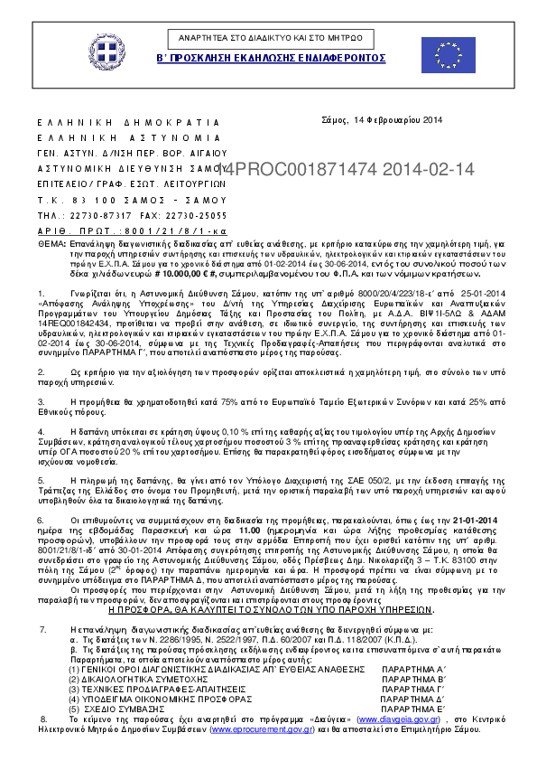 Αναζήτηση σε προκηρύξεις και συμβάσεις για: