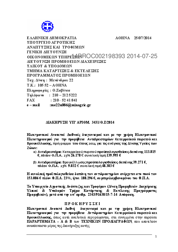 2. ΔΙΑΚΗΡΥΞΗ 3432/ΘΖ/2014 ΠΡΟΜΗΘΕΙΑ ΑΝΤΙΔΡΑΣΤΗΡΙΩΝ