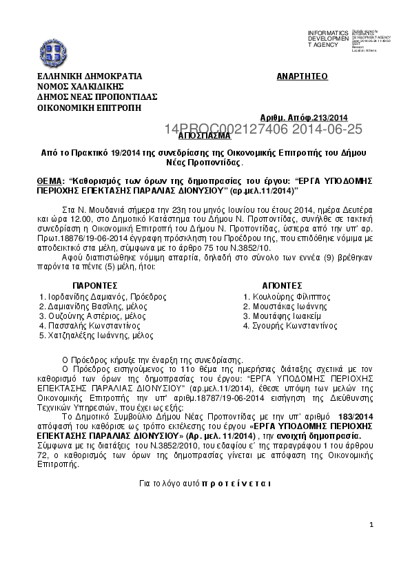 1. ΕΡΓΑ ΥΠΟΔΟΜΗΣ ΠΕΡΙΟΧΗΣ ΕΠΕΚΤΑΣΗΣ ΠΑΡΑΛΙΑΣ ΔΙΟΝΥΣΙΟΥ (Αρ.Μελ.11/2014)