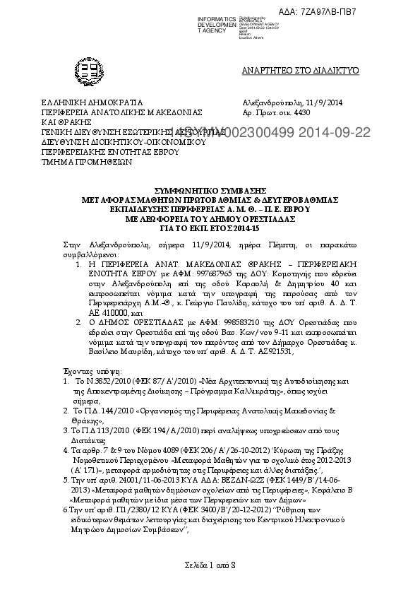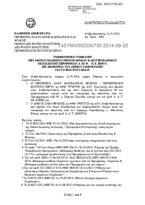 1. ΣΥΜΒΑΣΗ ΜΕΤΑΦΟΡΑΣ ΜΑΘΗΤΩΝ Α/ΘΜΙΑΣ & Β/ΘΜΙΑΣ ΕΚΠΑΙΔΕΥΣΗΣ ΠΕ ΕΒΡΟΥ ΜΕ ΛΕΩΦ Δ ΣΑΜΟΘΡΑΚΗΣ