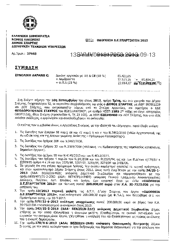 1. Οδοποιία ΔΕ Σπαρτιατών 2013