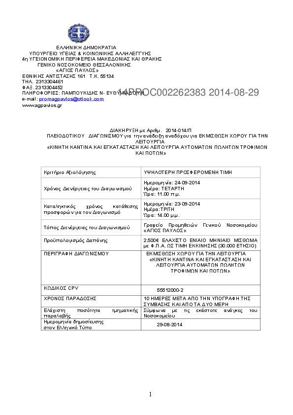 Αναζήτηση σε προκηρύξεις και συμβάσεις για: