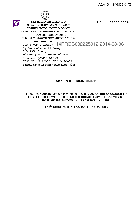 5. ΔΙΑΚΗΡΥΞΗ ΓΙΑ ΤΗΝ ΣΥΝΤΗΡΗΣΗ ΙΑΤΡΟΤΕΧΝΟΛΟΓΙΚΟΥ ΕΞΟΠΛΙΣΜΟΥ