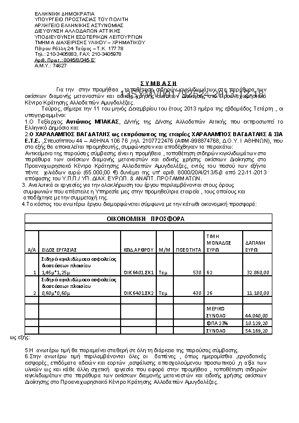 3. ΣΥΜΒΑΣΗ ΓΙΑ ΠΡΟΜΗΘΕΙΑ ΚΑΙ ΕΓΚΑΤΑΣΤΑΣΗ ΘΥΡΩΝ ΚΑΙ ΠΑΡΑΘΥΡΩΝ ΣΤΟ ΠΚΚΑΑ