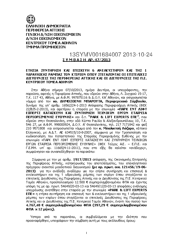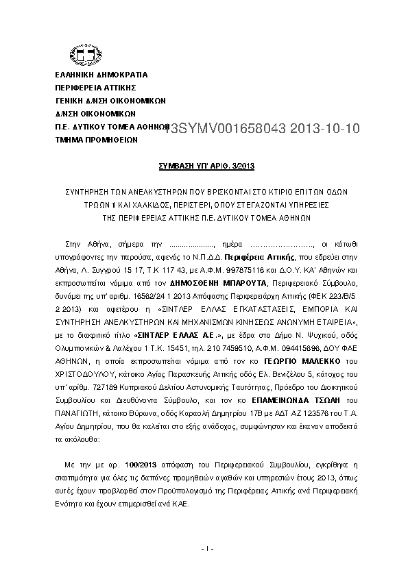 7. ΣΥΝΤΗΡΗΣΗ ΑΝΕΛΚΥΣΤΗΡΩΝ ΣΕ ΚΤΙΡΙΟ ΟΠΟΥ ΣΤΕΓΑΖΟΝΤΑΙ ΥΠΗΡΕΣΙΕΣ ΤΗΣ Π.Ε. ΔΥΤΙΚΟΥ ΤΟΜΕΑ ΑΘΗΝΩΝ