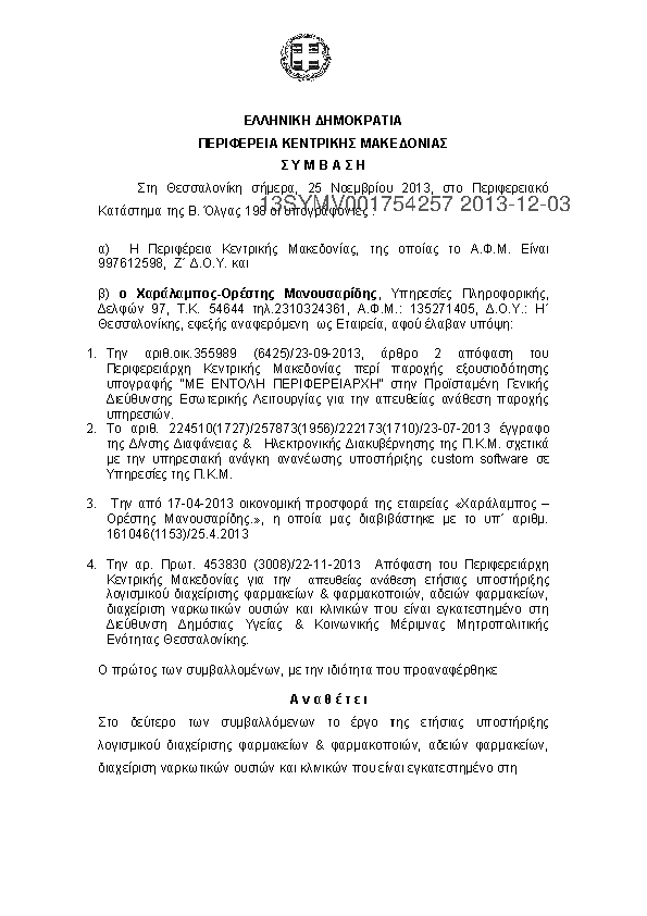 1. Ετήσια υποστήριξη λογισμικού διαχείρισης φαρμακείων κτλ Δ/νση Δημ.Υγείας Μ.Ε.Θ.