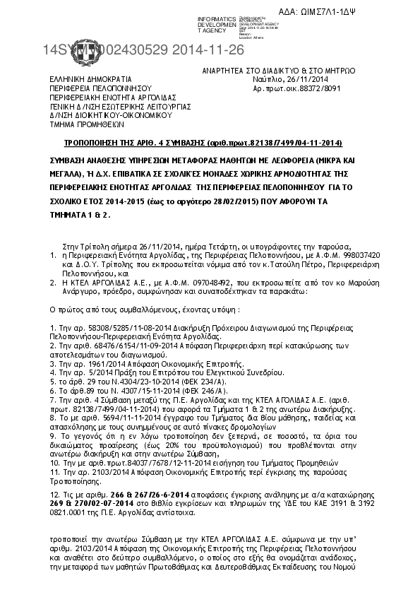 8. ΣΥΜΒΑΣΗ ΤΡΟΠΟΠΟΙΗΤΙΚΗ ΑΝΑΘΕΣΗΣ ΥΠΗΡΕΣΙΩΝ ΜΕΤΑΦΟΡΑΣ ΜΑΘΗΤΩΝ (ΠΡΟΧΕΙΡΟΥ ΔΙΑΓΩΝΙΣΜΟΥ)ΠΕ ΑΡΓΟΛΙΔΑΣ