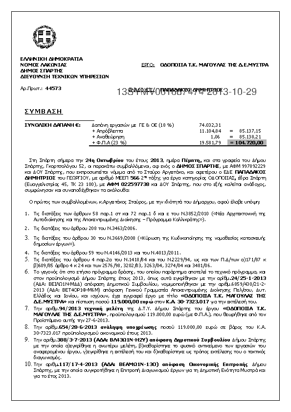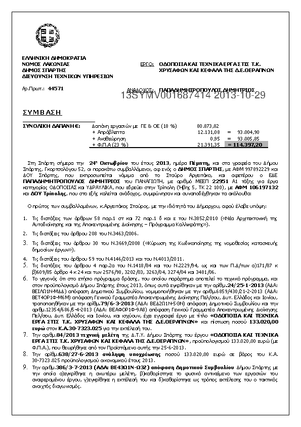7. Οδοποιία και τεχνικά έργα στπς Τ.Κ. Χρυσάφων και Κεφαλά της Δ.Ε.Θεραπνών