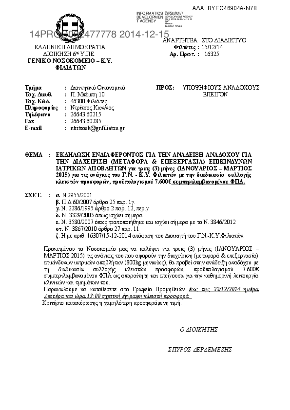 Αναζήτηση σε προκηρύξεις και συμβάσεις για: