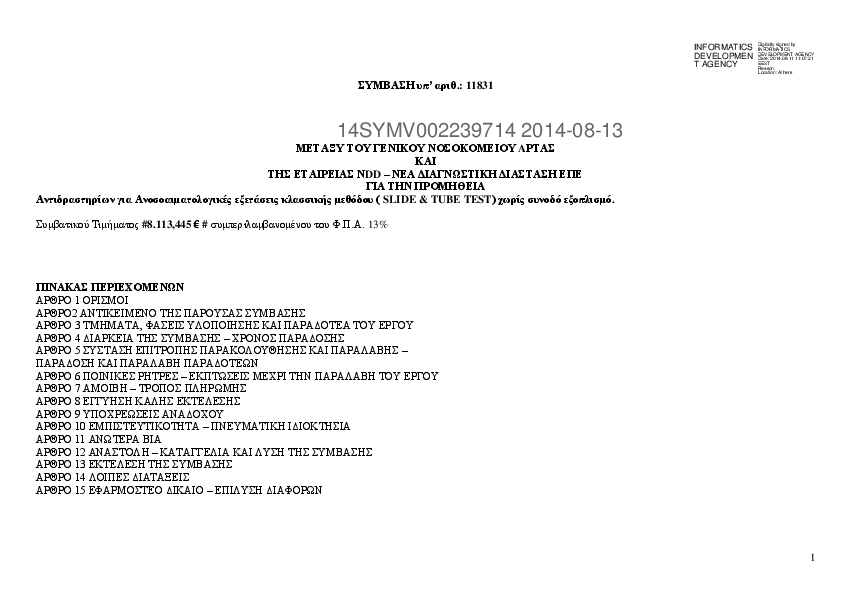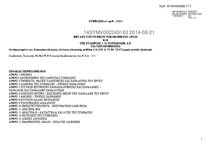 4. ΣΥΜΒΑΣΗ ΓΙΑ ΤΗΝ ΠΡΟΜΗΘΕΙΑ ΑΝΤΙΔΡΑΣΤΗΡΙΩΝ ΓΙAANOΣΟΑΙΜΑΤΟΛΟΓΙΚΕΣ ΕΞΕΤΑΣΕΙΣ ΚΛΑΣ.ΜΕΘ. ΧΩΡΙΣ ΣΥΝ.ΕΞΟΠΛΙΣ
