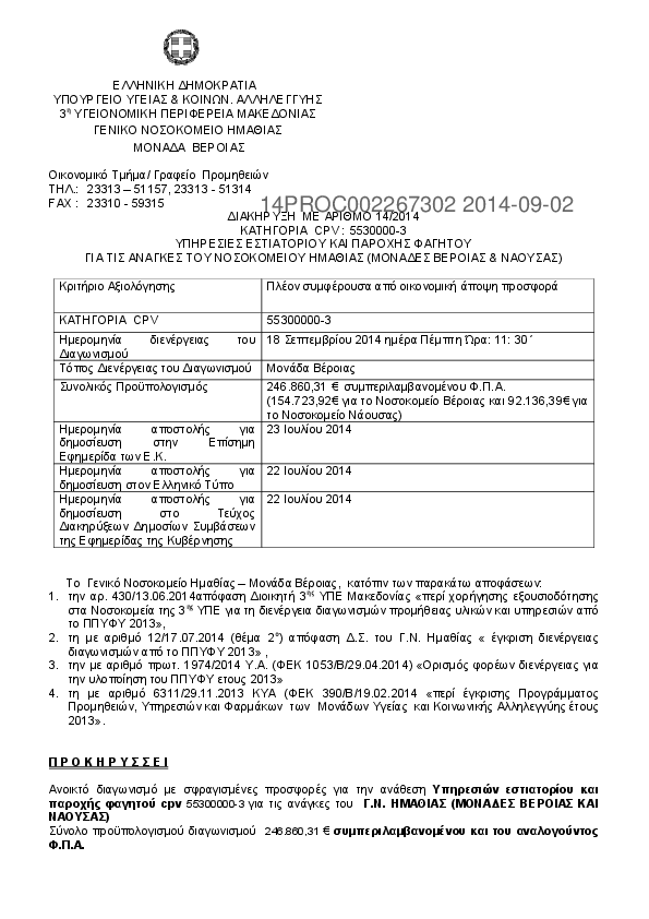 1. ΥΠΗΡΕΣΙΕΣ ΕΣΤΙΑΤΟΡΙΟΥ ΚΑΙ ΠΑΡΟΧΗΣ ΦΑΓΗΤΟΥ ΓΙΑ ΤΙΣ ΑΝΑΓΚΕΣ ΤΟΥ ΝΟΣΟΚΟΜΕΙΟΥ ΗΜΑΘΙΑΣ (ΜΟΝΑΔΕΣ ΒΕΡΟΙΑΣ &