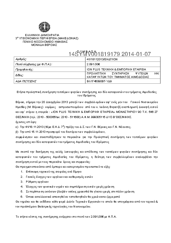 Αναζήτηση σε προκηρύξεις και συμβάσεις για:  Ετήσιο