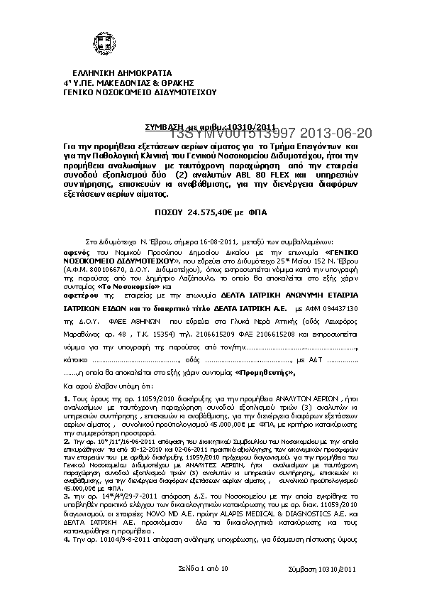 10. ΣΥΜΒΑΣΗ ΠΡΟΜΗΘΕΙΑΣ ΕΞΕΤΑΣΕΩΝ ΑΕΡΙΟΥ ΑΙΜΑΤΟΣ