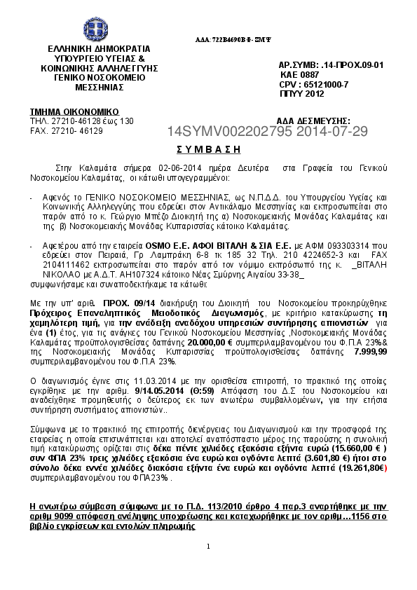 8. 14-ΔΗΜ.29-01 ΣΥΜΒΑΣΗ ΠΑΡΟΧΗΣ ΥΠΗΡΕΣΙΩΝ ΚΑΘΑΡΙΣΜΟΥ ΤΟΥ ΝΟΣ/ΜΕΙΟΥ ΚΑΛΑΜΑΤΑΣ