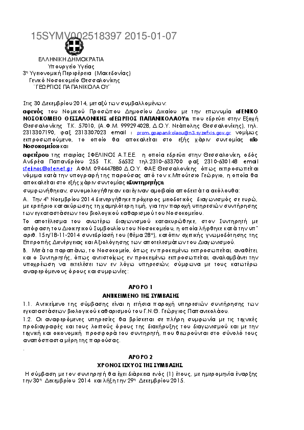 3. ΣΥΜΒΑΣΗ ΣΥΝΤΗΡΗΣΗΣ ΕΓΚΑΤΑΣΤΑΣΕΩΝ ΒΙΟΛΟΓΙΚΟΥ ΚΑΘΑΡΙΣΜΟΥ Γ.Ν.Θ. Γ.ΠΑΠΑΝΙΚΟΛΑΟΥ