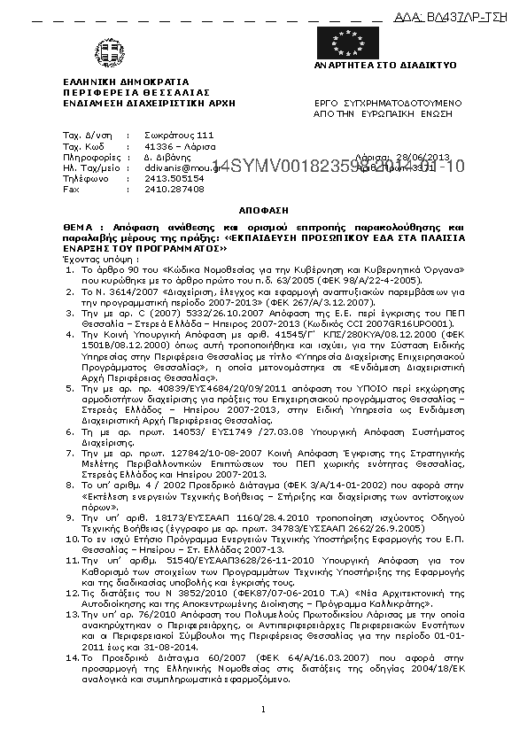 1. ΑΠΟΦΑΣΗ ΑΝΑΘΕΣΗΣ «ΕΝΕΡΓΕΙΕΣ ΕΜΜΕΣΗΣ ΔΗΜΟΣΙΟΤΗΤΑΣ»