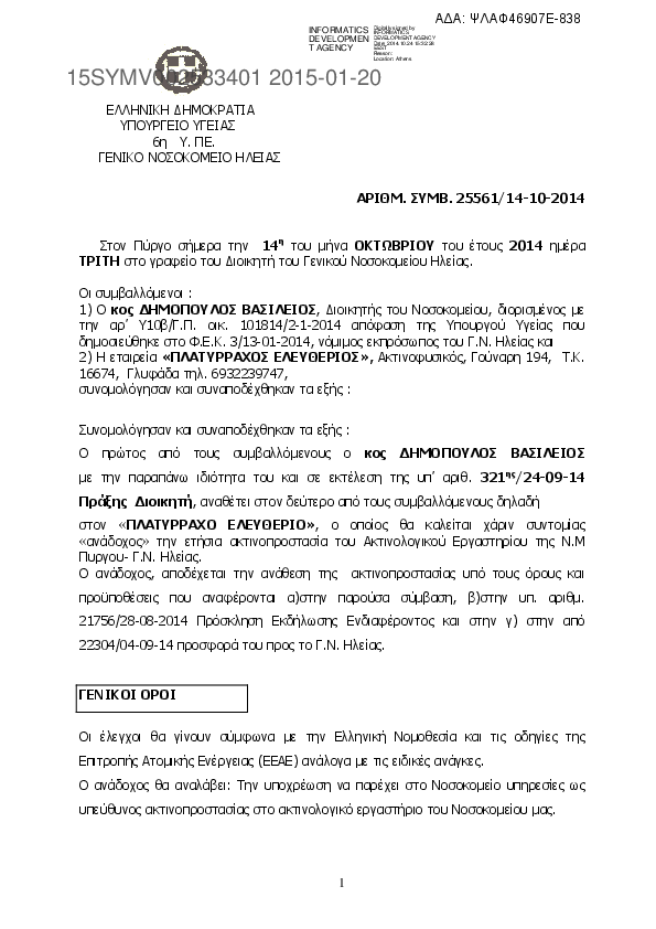 2. Ανάδειξη Αναδόχου Καθαριότητας Των Χώρων του Γ.Ν. Ηλείας και του ΚΕΦΙΑΠ.
