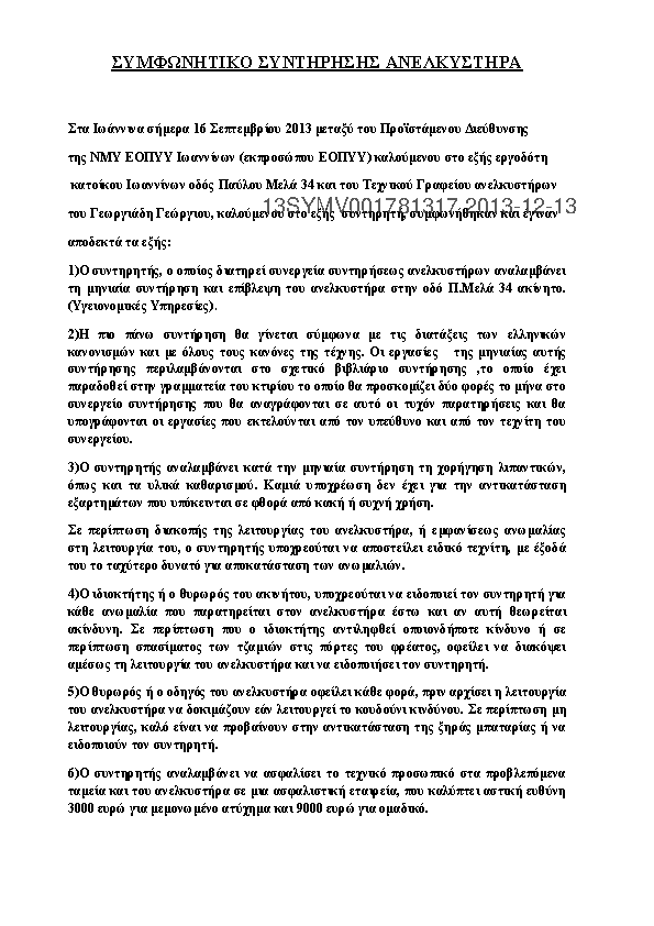 1. ΣΥΜΦΩΝΗΤΙΚΟ ΣΥΝΤΗΡΗΣΗΣ ΑΝΕΛΚΥΣΤΗΡΑ